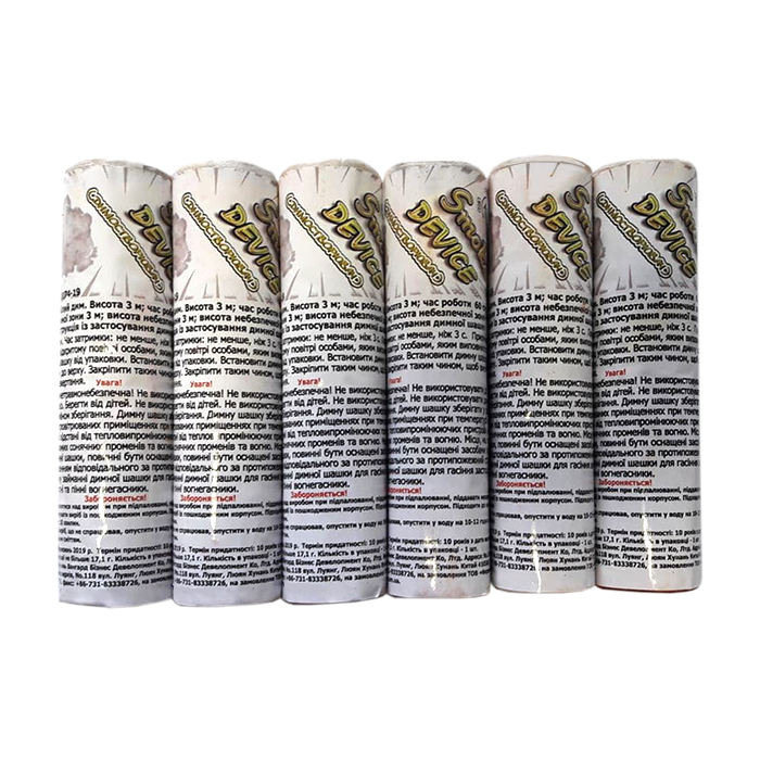 Опис: Димова шашка при спрацьовуванні випускає густий дим білого кольору протягом 40 секунд. Зазвичай використовується для кіно-фото сесій або з сигнальною метою. Для кращого ефекту рекомендуємо використовувати в гарну безвітряну погоду. Густота диму і радіус його поширення безпосередньо залежить від погодних умов, що слід враховувати при його використанні.